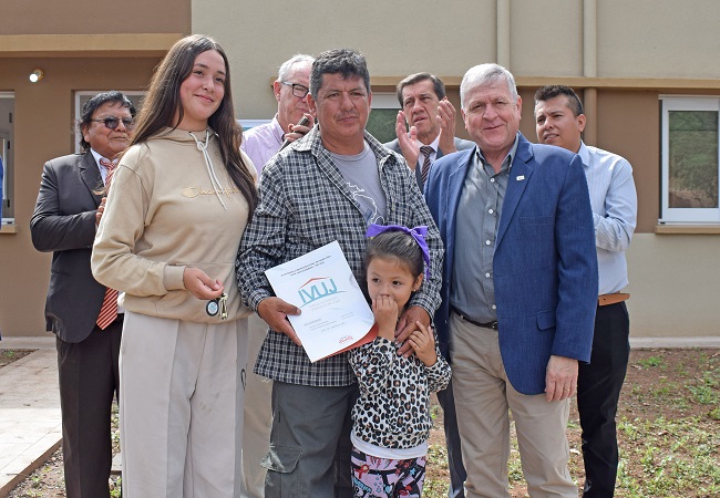 Del evento participaron además el ministro de Infraestructura, Carlos Stanic, y los vocales del IVUJ, Sergio Soria y Marcelo García, junto a autoridades municipales y las familias adjudicatarias que recibieron sus llaves.