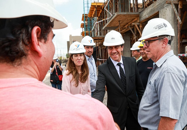 El gobernador Carlos Sadir recorrió el avance de la construcción de los 288 departamentos e infraestructura en el sector de las 150 Hectáreas del barrio Alto Comedero. Se trata de una operatoria del Instituto de Vivienda y Urbanismo de Jujuy (IVUJ) que es edificada de manera articulada entre los sectores público y privado.